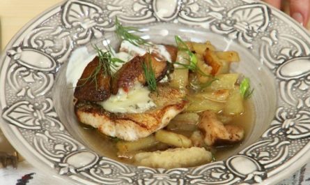 5. Разогреваем ковш с растительным маслом, обжариваем бекон и лук.