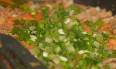 5. Добавляем в ковш рубленные анчоусы, каперсы, перемешиваем и обжариваем.