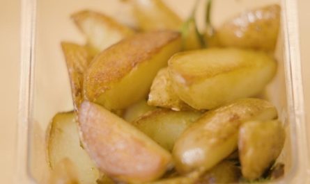 4. После запекания нарезаем курицу на небольшие кусочки, перекладываем в миску и даём остыть.