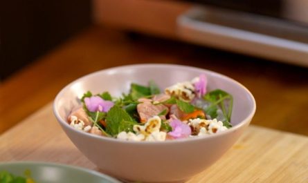 13. При подаче выкладываем рыбу на тарелку, сверху добавляем соус и украшаем измельчённой кинзой и сладкой молотой паприкой.