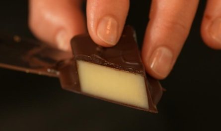 9. Разогреваем сливки, добавляем веточку розмарина и шоколад, все вместе топим.
