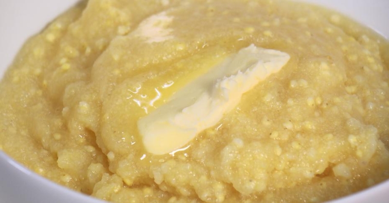 4. Добавляем пшено к поленте, соль, перемешиваем и оставляем вариться.