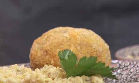 9. При подаче разрезаем сэндвич пополам и подаём с салатом.