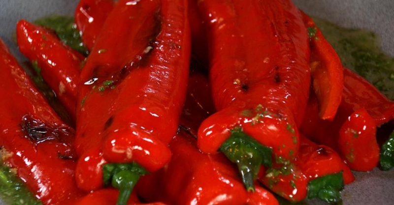 6. После обжаривания перцы можно вернуть в ту же миску с маслом, где они мариновались.