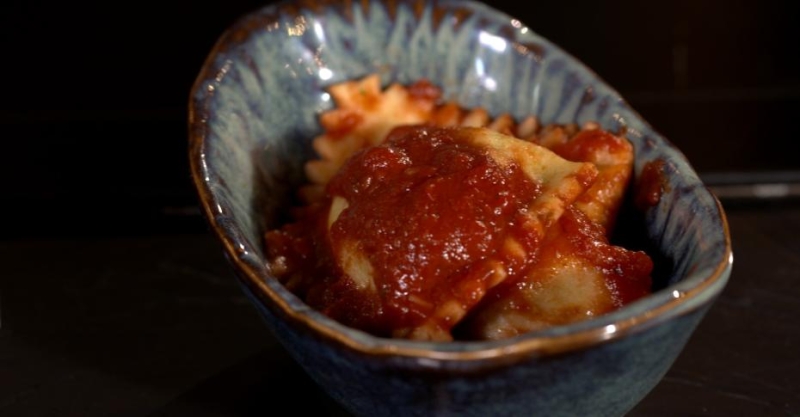 9. С помощью ножа или резака разделите тесто на пансотти.