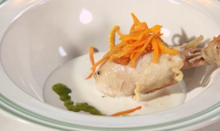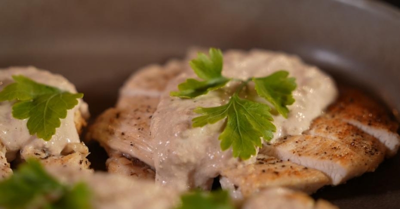 5. Полейте курицу соусом и украсьте листьями петрушки.
