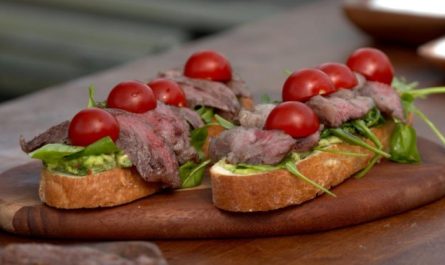 7. Перед подачей посыпаем салат брынзой, украшаем кольцами лука и петрушкой.