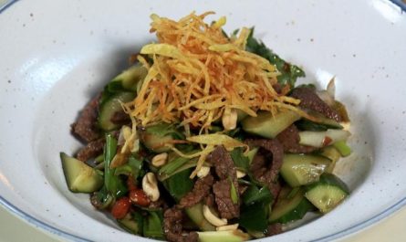 5. Готовое блюдо посыпьте кинзой и жареным кунжутом.