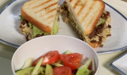 4. Готовим соус. В ковш вливаем молоко, добавляем яйцо, муку, соль, перемешивая постоянно венчиком, нагреваем.