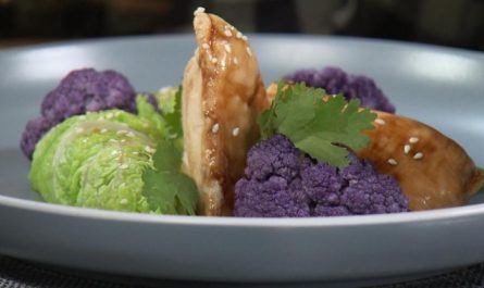 11. При подаче выкладываем на тарелку салат, добавляем стружку из моркови, цедру лимона и рыбу.