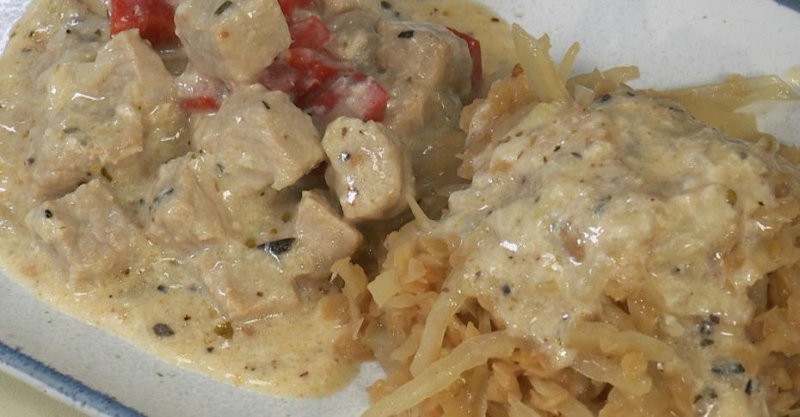 10. При подаче выкладываем капусту и мясо на блюдо.